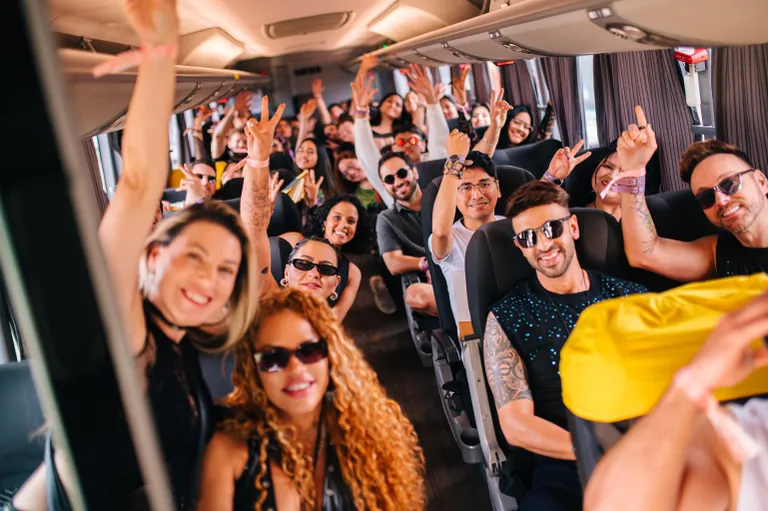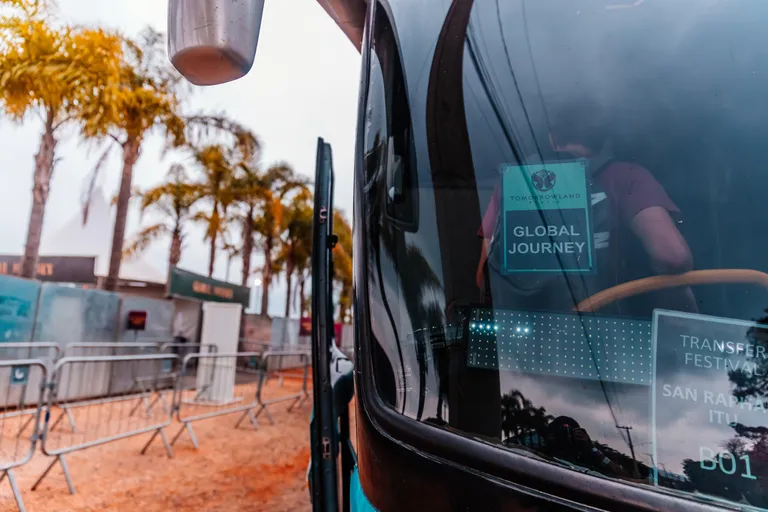 Viaje com o Global Journey de ônibus até a entrada do Tomorrowland Brasil.
